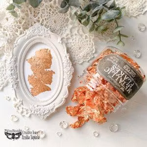 Små skinande blanka kopparfärgade metallfolieflingor som ger ett fantastiskt förgyllt och lite strukturerat utseende. Perfekt till mixed media, decoupage project och olika inredningsprojekt. Används tillsammans med bladlim / gilding glue.