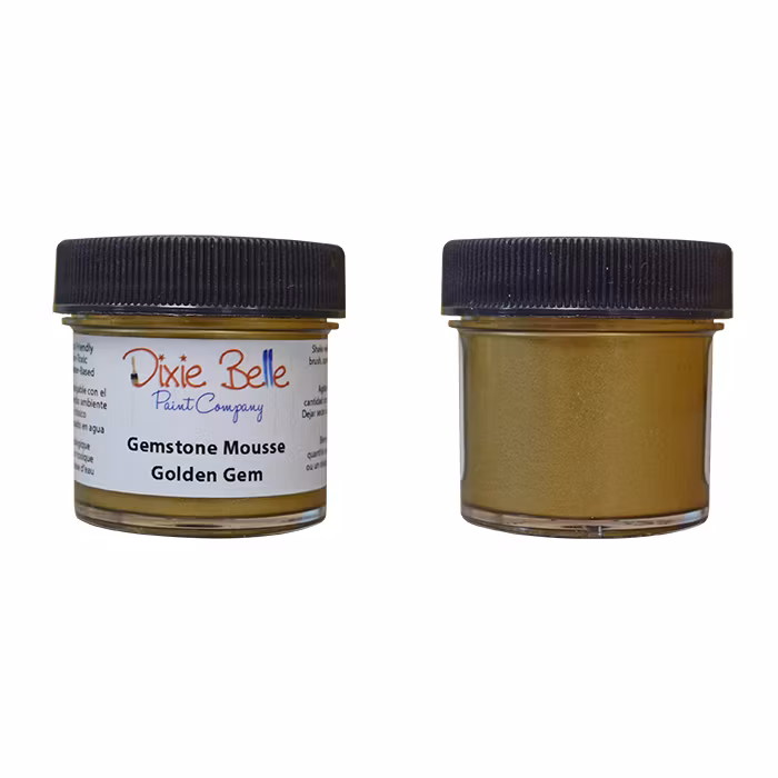 Dixie Belle Gemstone Mousse är en krämig och högt pigmenterad metallisk färg/mousse som används till för förgyllning av detaljer (tjockare och mer koncentrerad än vanlig än metallfärg).