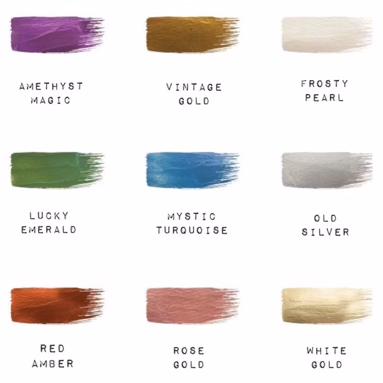 Underbart krämig metallisk pasta som tillför dimension, färg och magisk lyster till alla dina mixed media- och heminredningsprojekt. Smidig och lätt att applicera med spatel, palettkniv, silikonpensel eller strukturverktyg. Pastan kan även appliceras med pensel eller fingertopparna för att framhäva detaljer. Permanent, färgbeständig och flexibel när den torkat.