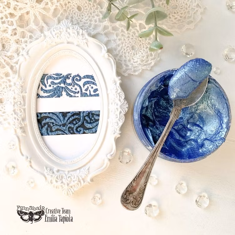 Denna magiskt glittrande metallpasta ger en fantastisk textur, dimension och lyster till alla dina mixed media- och heminredningsprojekt! Pastan är lätt att sprida ut med en palettkniv, silikonpensel, strukturverktyg, eller med fingrarna för olika frihandeffekter. Perfekt tillsammans med schabloner för vackert glittrande och gnistrande mönster samt texturerad dimension. Permanent och flexibel efter torkning.