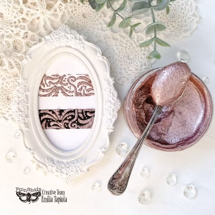 Denna magiskt glittrande metallpasta ger en fantastisk textur, dimension och lyster till alla dina mixed media- och heminredningsprojekt! Pastan är lätt att sprida ut med en palettkniv, silikonpensel, strukturverktyg, eller med fingrarna för olika frihandeffekter. Perfekt tillsammans med schabloner för vackert glittrande och gnistrande mönster samt texturerad dimension. Permanent och flexibel efter torkning.
