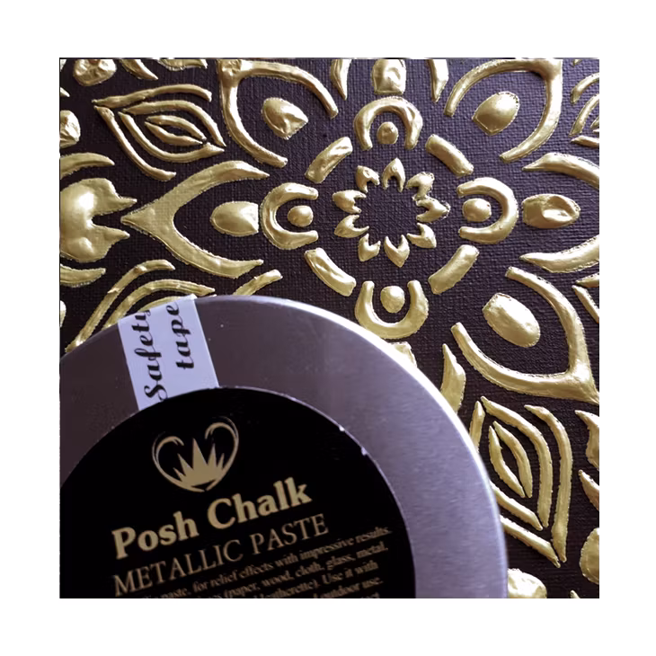 Posh Chalk Metallic Paste är en slät 3D-metallic / embossingpasta används för att skapa struktur och dimension till ditt projekt. Pastan används främst till schablonmålning med reliefeffekt (upphöjd), men han även användas till andra metalleffekter. Den liknar en mycket kompakt metallfärg med tjock och krämig konsistens. Den expanderar under värme och ger spännande embossingeffekter. Pastan kan användas till allt från gratulationskort, till krukor, möbler och väggar.
