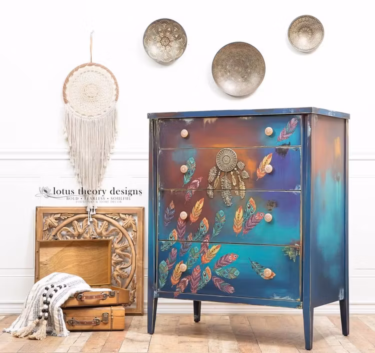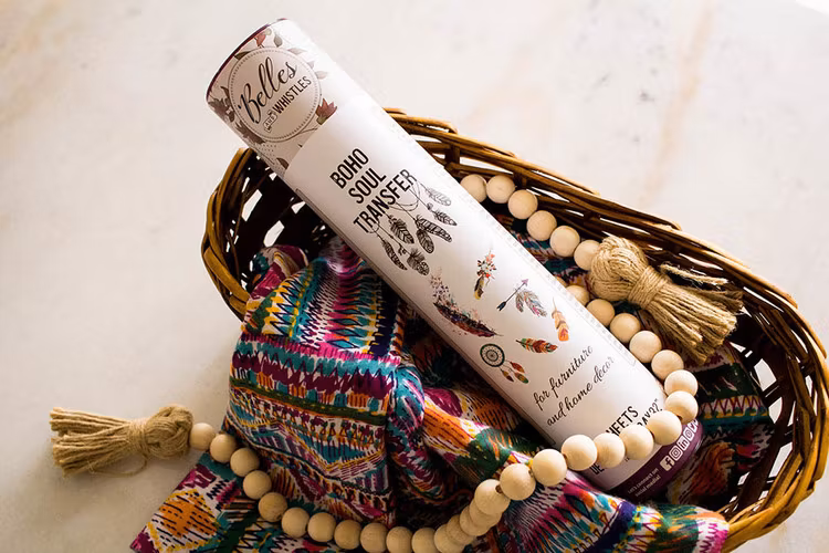 Bejaka din Boho Soul med denna färgglada samling av bohemiska transfermotiv bestående ab fjädrar och drömfångare. Emily Dickenson sa det bäst, “Hope is the thing with feathers”. Denna transfer kommer att ta fram din inre kreativitet för att skapa något riktigt unikt. Passar perfekt tillsammans med Dixie Belle Chalk Mineral Paint i nyanserna Apricot, Flamingo, Pine Cone, Rebel Yellow, Sea Glass och Soft Pink.