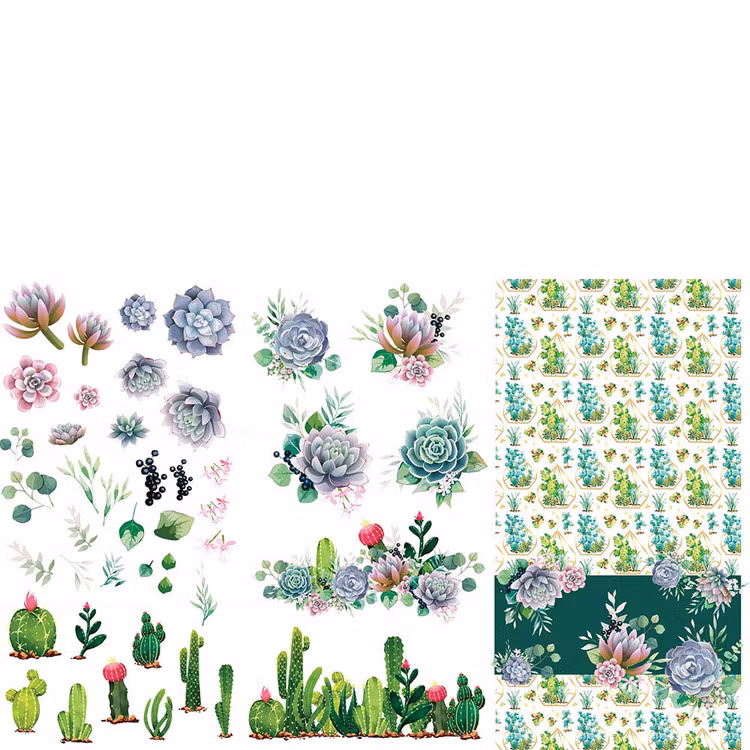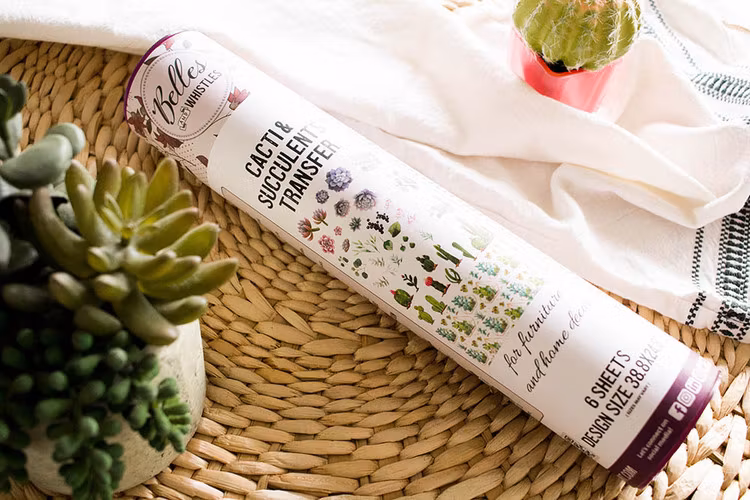 Kaktusar och suckulenter rotade i uthållighet och skönhet... Denna samling transfermotiv erbjuder buntar av jordnära suckulenter både tonade och krispiga nyanser som passar perfekt tillsammans med Dixie Belle Chalk Mineral Paint i nyanserna Antebellum Blue, Farmhouse Green och Mint Julep.