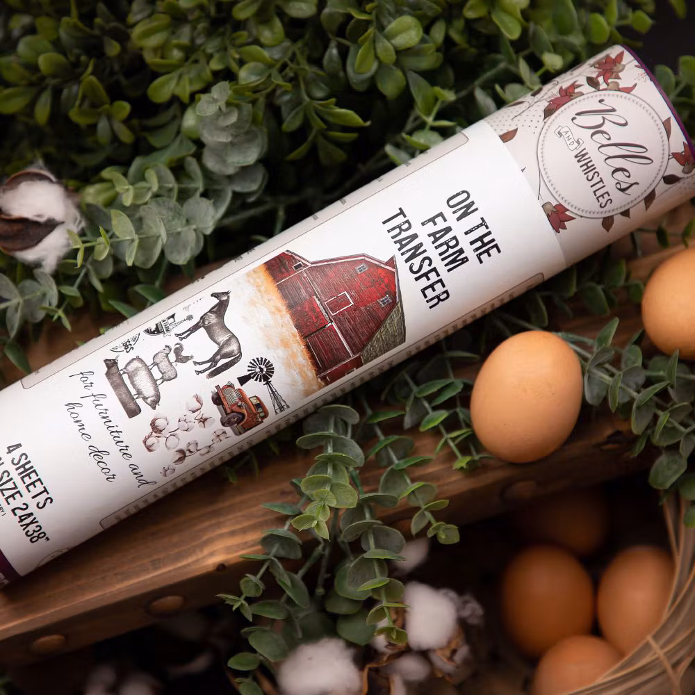 Welcome to the Dixie Belle Paint farm, don't be shy! We have 4 sheets of animals, trucks, and a barn to give your piece that rustic down home feel. This transfer design has everything you need to create that amazing farm house look!