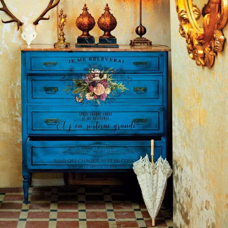 • Använder du transfers till mer porösa färger som t.ex Autentico Vintage och Milk Paint, bör du först försegla ytan med t.ex Autentico Sealer eller ett matt lack för att binda färgen ordentligt och få ett fast underlag. Annars kan det leda till att transfern släpper med tiden, även om den verkar sitta bra initialt (jämför med att försöka tejpa fast något på en dammig yta)