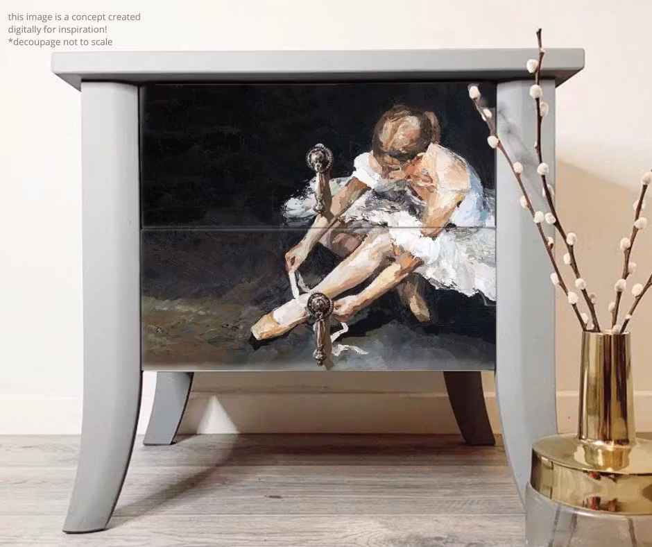 Graceful and elegant, this delicate design is certain to add a museum-like quality to your DIY projects. Reminiscent of vintage oil paintings, the Floral Ballerina features rich, moody colors for a timeless look!