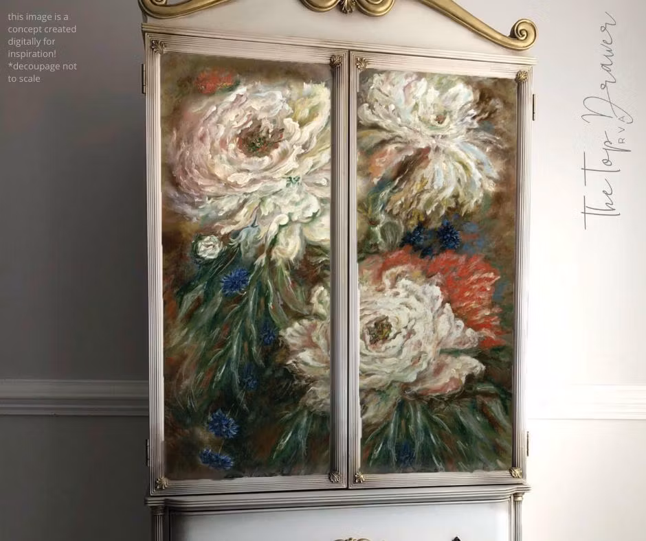 Decoupagepapper av premiumkvalitet som kan användas till att skapa unik dekor på t.ex. möbler, väggar och inredningsdetaljer.