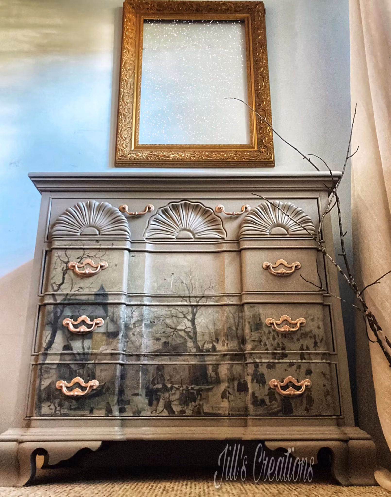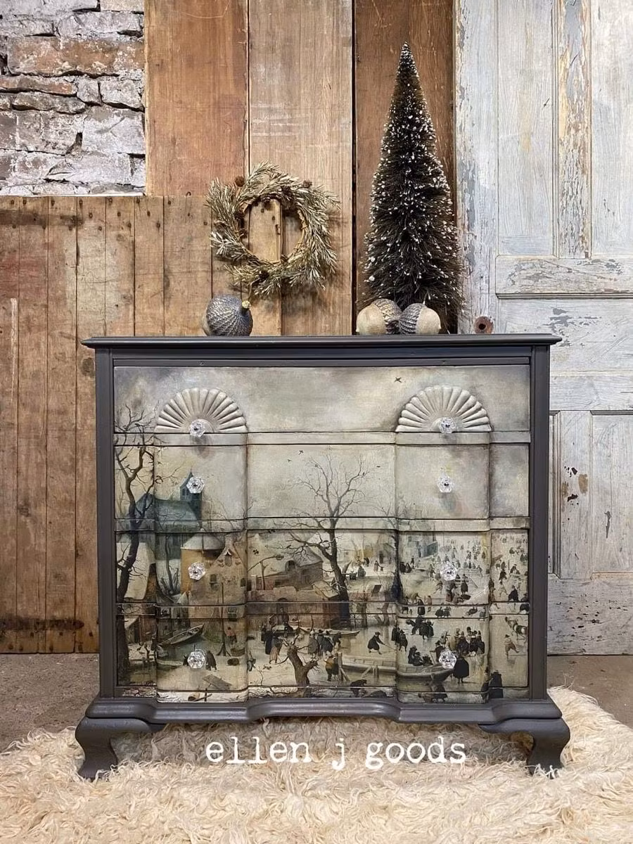 Med den här metoden blir ofta decoupagepappret lite mer skrynklig och rynkigt (speciellt de stora arken). Det behöver absolut inte vara något negativt, ett motiv som ser lite sprucket och krackelerat ut kan bidra till ett mer åldrat utseende.