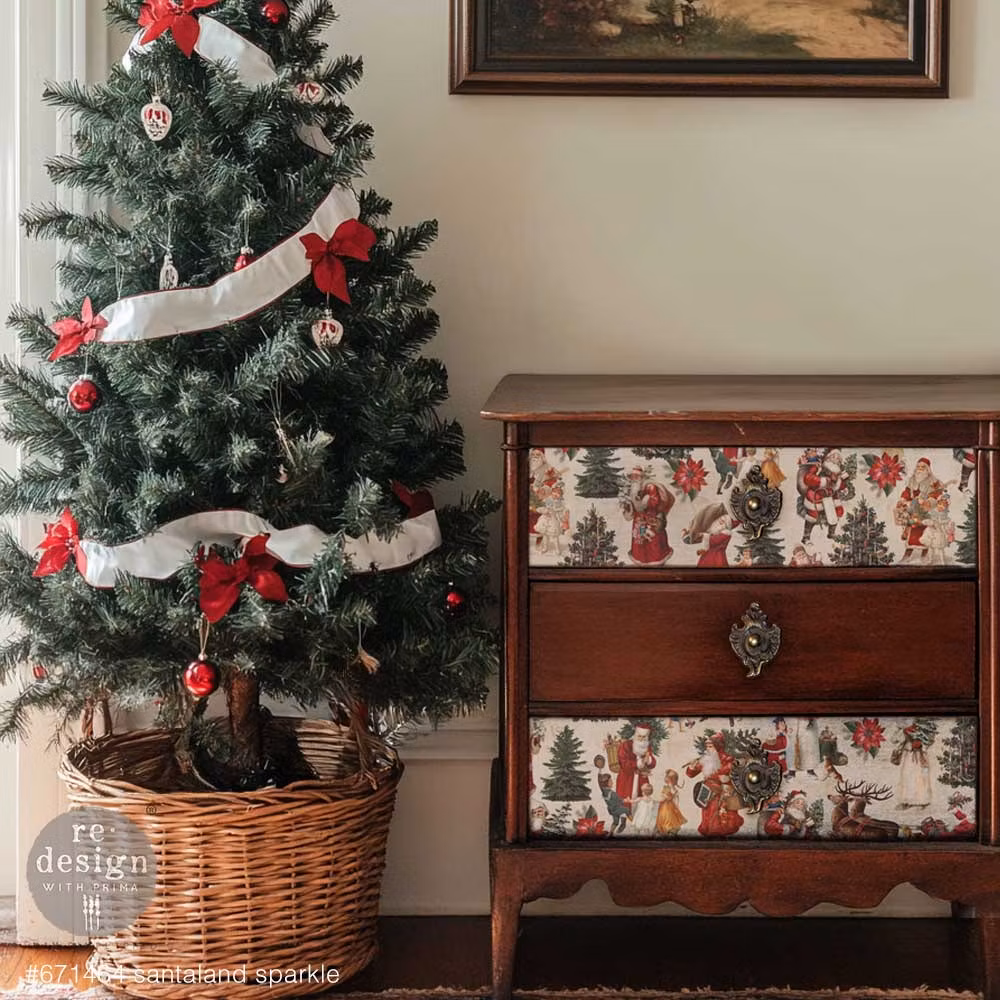 Re Design - A3 Decoupage Fiber Paper - Santaland Sparkle 3-Pack á 30x42cm