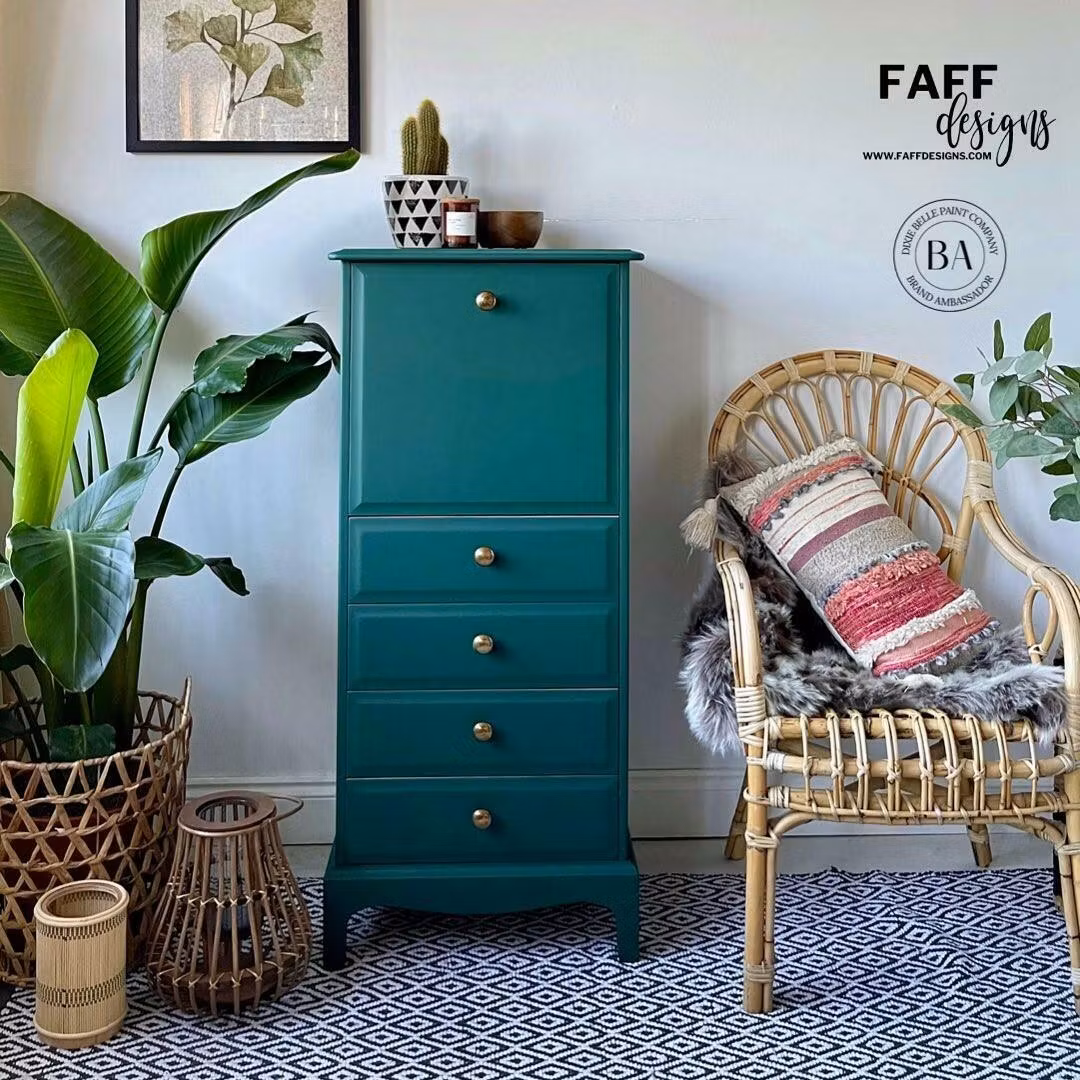 Dina möbler kommer att se fräscha ut längre tack vare de speciella tillsatserna som skapar en hårdare och starkare finish än Dixie Belles Chalk Mineral Paint. Det är en färg som även passar utmärkt till köksluckor m.m. Den hårda ytan skyddar mot fett, fläckar, vatten och mögelpåväxt. Du kan enkelt rengöra dina nymålade ytor och till och med skrubba dem efter 21 dagars härdningstid.
