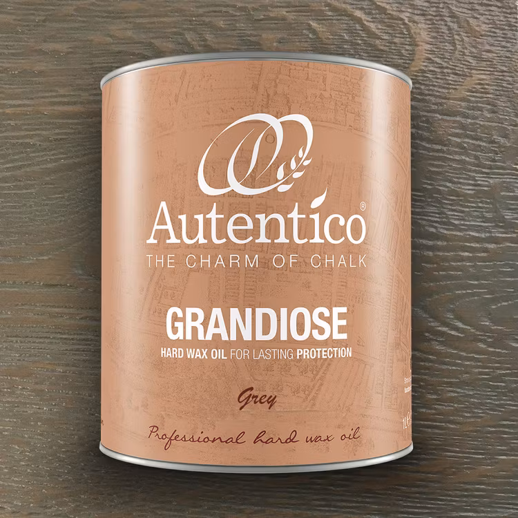 Autentico Grandiose hårdvaxolja lämnar en högpresterande skyddande beläggning på trärena ytor, ytor målade med kalk- och mineralfärger och andra porösa och sugande underlag. Grandiose innehåller lösningsmedel som hjälper oljorna att tränga djupt ner i underlaget. Den skyddar mot vatten, fukt, syror, alkohol, fukt, fett, fläckar, damm, smuts och dagligt bruksslitage. Autentico Grandiose finns som ofärgad; Natural (naturligt neutral) och i åtta färgade varianter; Light Grey, Sand, Clay, White, Soft White, Creamy White, Grey, Smoked.