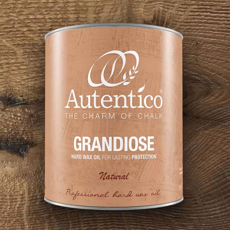 Autentico Grandiose hårdvaxolja lämnar en högpresterande skyddande beläggning på trärena ytor, ytor målade med kalk- och mineralfärger och andra porösa och sugande underlag. Grandiose innehåller lösningsmedel som hjälper oljorna att tränga djupt ner i underlaget. Den skyddar mot vatten, fukt, syror, alkohol, fukt, fett, fläckar, damm, smuts och dagligt bruksslitage. Autentico Grandiose finns som ofärgad; Natural (naturligt neutral) och i åtta färgade varianter; Light Grey, Sand, Clay, White, Soft White, Creamy White, Grey, Smoked.
