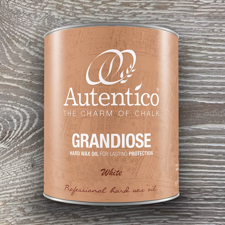 Autentico Grandiose hårdvaxolja lämnar en högpresterande skyddande beläggning på trärena ytor, ytor målade med kalk- och mineralfärger och andra porösa och sugande underlag. Grandiose innehåller lösningsmedel som hjälper oljorna att tränga djupt ner i underlaget. Den skyddar mot vatten, fukt, syror, alkohol, fukt, fett, fläckar, damm, smuts och dagligt bruksslitage. Autentico Grandiose finns som ofärgad; Natural (naturligt neutral) och i åtta färgade varianter; Light Grey, Sand, Clay, White, Soft White, Creamy White, Grey, Smoked.