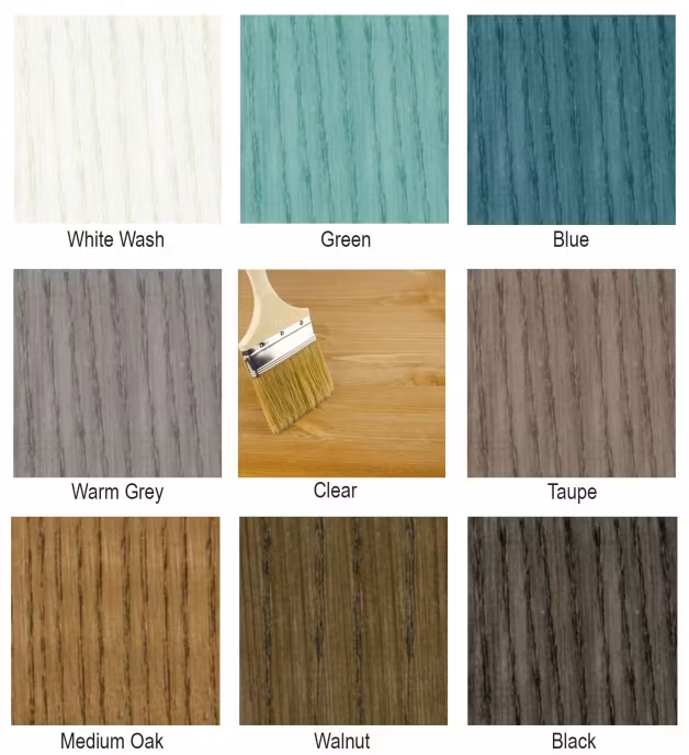 Våra färgprover målas på "tags" av formpressat trä, de är av mycket ljust träslag och absorptionen är inte den bästa. Lacket ger en mycket stark färg i jämförelse med t.ex ett färgat vax eller olja (som kräver ett sugande underlag). Kanterna på tagsen är mer porösa och blir snabbt djupt infärgade. Se bild för skillnad mellan ett och flera lager. De färgprover vi säljer är av medelstyrka.