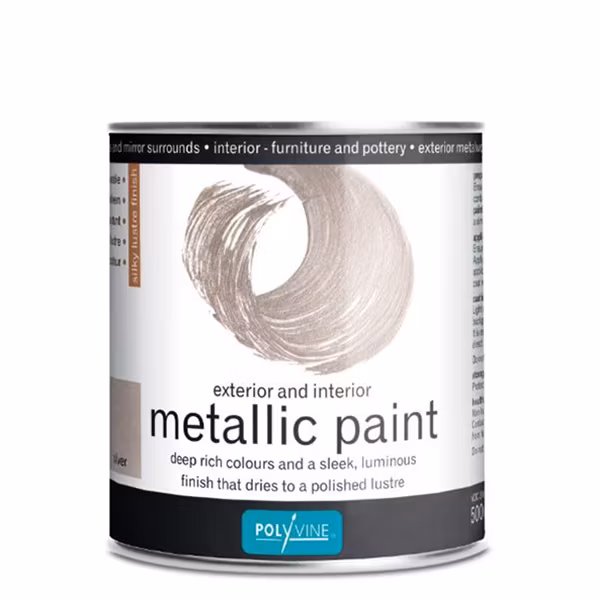 Tips! Polyvine Metallic Paint kan färgsättas med Polyvine Acrylic Colorant för förändra och skapa många fler nyanser. Du kan även använda metallbasen Metallic Shimmer för att skapa egna pärlemoskimrande metallicfärger i regnbågens alla kulörer. Tillsätt Polyvine Glitter Paint Maker för superglittriga metallicfärger ochj/eller avsluta med ett lager Polyvine Glitter Glaze för en extra gnistrande och blank lyster.
