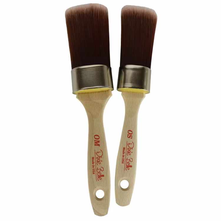 Dixie Belle's syntetiska penslar håller en mycket hög professionell kvalitet. Borsten är tillverkad av högkvalitativa syntetiska DuPont SRT (Solid Round Tapered) blandningsfilament av nylon och polyester. Stråna är avsmalnande och imiterar de naturligt delade topparna på en svinborstspensel för ett slätare resultat vid målning. Borsten är medium till styv och erbjuder precis rätt balans mellan flexibilitet och motstånd, vilket också hjälper penseln att behålla sin form länge.