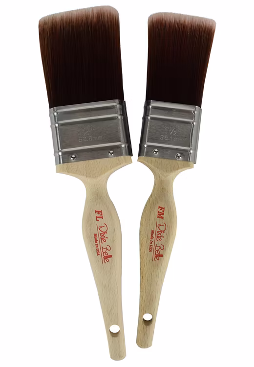 Dixie Belle's syntetiska penslar håller en mycket hög professionell kvalitet. Borsten är tillverkad av högkvalitativa syntetiska DuPont SRT (Solid Round Tapered) blandningsfilament av nylon och polyester. Stråna är avsmalnande och imiterar de naturligt delade topparna på en svinborstspensel för ett slätare resultat vid målning. Borsten är medium till styv och erbjuder precis rätt balans mellan flexibilitet och motstånd, vilket också hjälper penseln att behålla sin form länge.