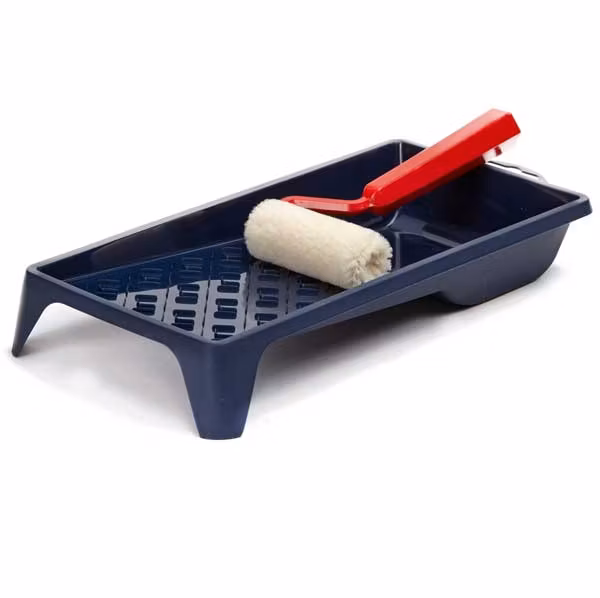Litet rollerset innehållande tråg, plastbygel och velourrulle 5 cm.
