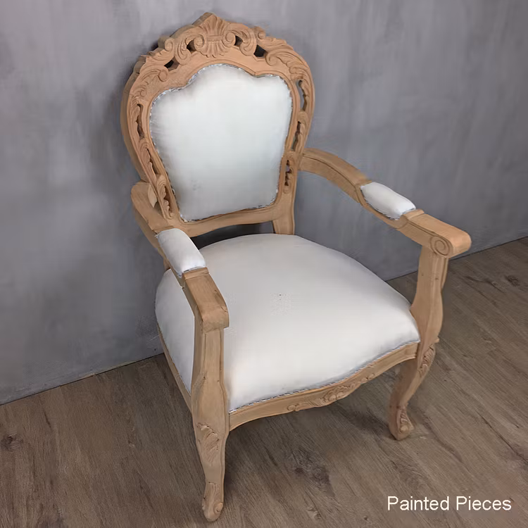 Eftersom stolarna är tillverkade för hand och utsmyckningarna är handsnidade är ingen exakt den andra lik och det kan finnas mindre avvikelser dem emellan, exempelvis kan blombladen kan ha lite olika form eller storlek. Små märken och ojämnheter i trät kan också förekomma och det kan finnas lagningar med träfyllning i sprickor och håligheter (efter t.ex kvistar). Du köper möbeln i befintligt skick och vi upplyser så gott vi kan om eventuella skavanker innan vi skickar den.