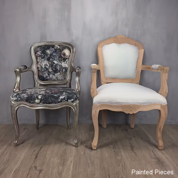 Eftersom stolarna är tillverkade för hand och utsmyckningarna är handsnidade är ingen exakt den andra lik och det kan finnas mindre avvikelser dem emellan, exempelvis kan blombladen kan ha lite olika form eller storlek. Små märken och ojämnheter i trät kan också förekomma och det kan finnas lagningar med träfyllning i sprickor och håligheter (efter t.ex kvistar). Du köper möbeln i befintligt skick och vi upplyser så gott vi kan om eventuella skavanker innan vi skickar den.