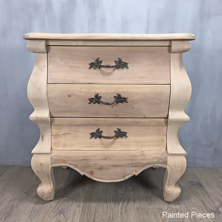 Möbeln levereras obehandlad och redo att målas, betsas, oljas eller lackas. Handtag / knopp ingår inte och byrån har inga förborrade hål (se bild), så att fritt själv ska kunna kunna välja design.