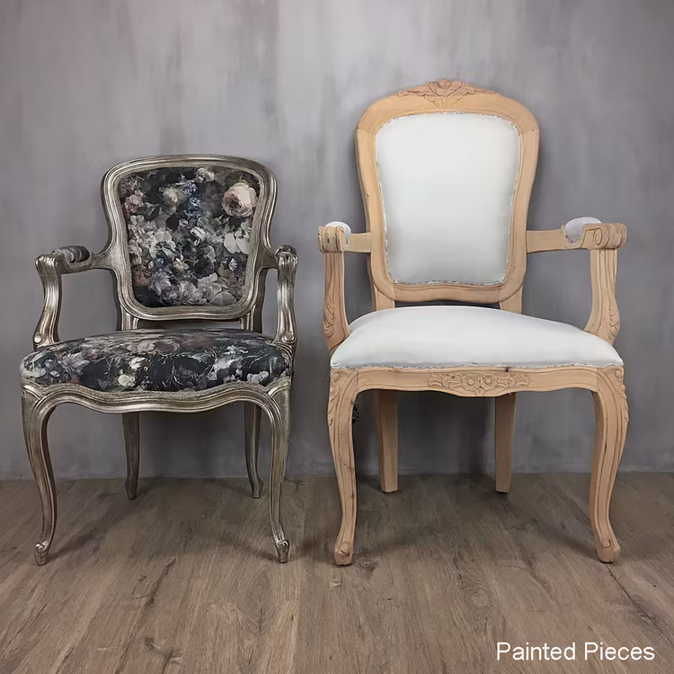 Eftersom stolarna är tillverkade för hand och utsmyckningarna är handsnidade är ingen exakt den andra lik och det kan finnas mindre avvikelser dem emellan, exempelvis kan blombladen kan ha lite olika form eller storlek. Små märken och ojämnheter i trät kan också förekomma och det kan finnas lagningar med träfyllning i sprickor och håligheter (efter t.ex kvistar). Du köper möbeln i befintligt skick och vi upplyser så gott vi kan om eventuella skavanker innan vi skickar den.