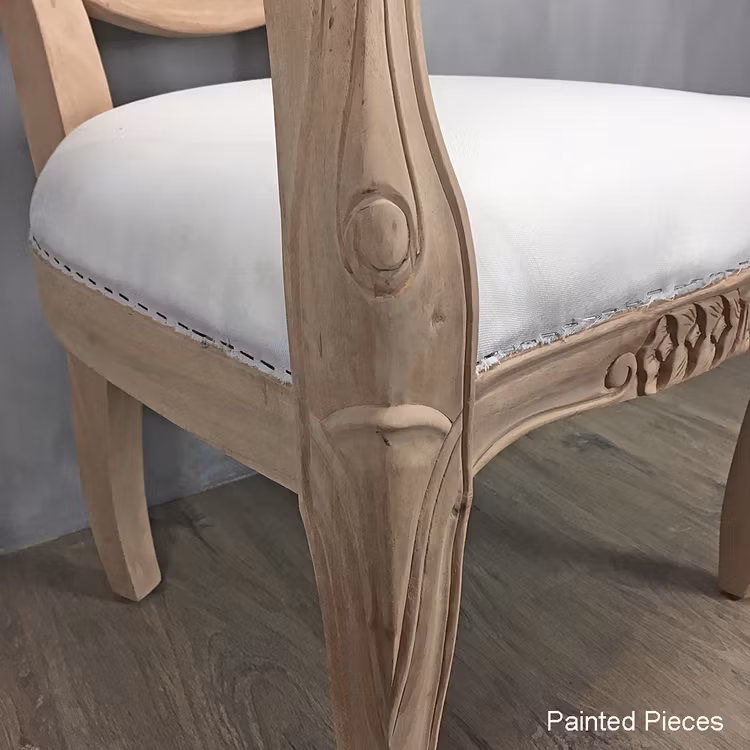 Våra stolar är inte förbehandlade och sitsen är endast beklädd med ett tunt bastyg. Det är upp till dig att måla, betsa, olja eller lacka efter eget tycke och smak. Stolarna är slipade och har en len yta, men det kan finnas små märken och ojämnheter som behöver spacklas och/eller slipas.