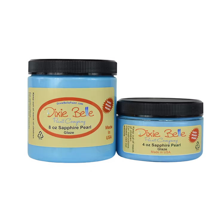 Dixie Belles lasyrer finns i flera färger, färdigblandade för dig att använda direkt. Du kan också skapa nya färger genom att blanda dem med varandra eller tillsätta lite flytande koncentrerade färgpigment (för att inte göra lasyren mer opak). Du ska helst inte tillsätta vanlig målarfärg till metall- och glitter lasyrer eftersom färgen täcker de metalliska pigmenten så att de skimrande ljusreflektionerna dämpas. Det går går också utmärkt att tillsätta mer glitter, metallpigment eller mica om du vill ha starkare metallisk effekt.