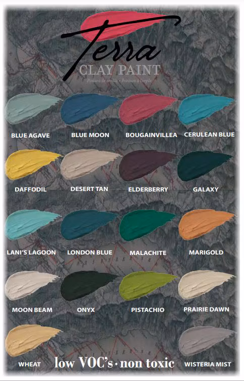 Dixie Belle Terra Clay Paint är en vattenburen "all natural" mineralfärg innehållande lera. Denna färg är idealisk för dig med kreativitet i fokus; Mixa, blanda, experimentera, lek och skapa så mycket du vill. Det finns inga regler med denna härligt tjocka och krämiga färg!